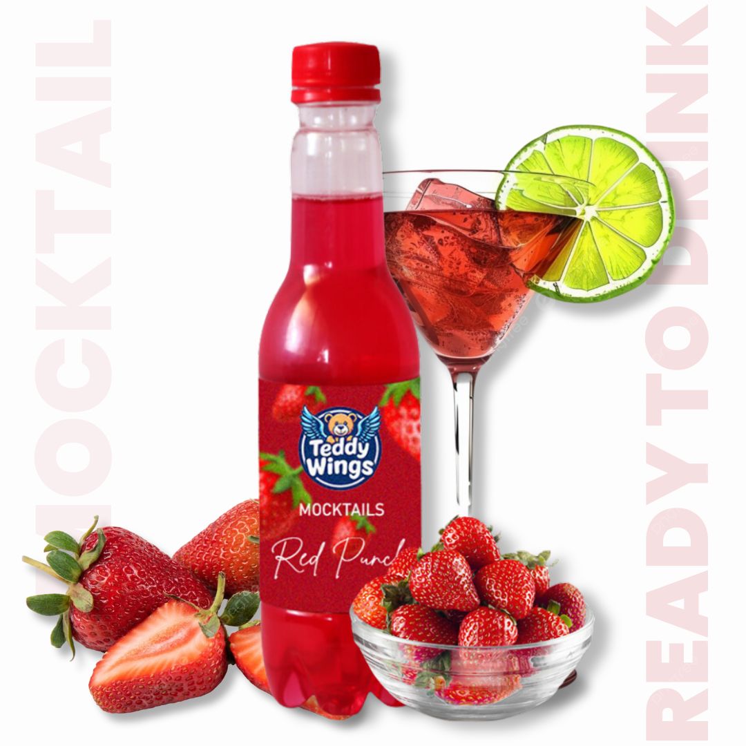 Experience the bold and fruity flavors of Teddy Wings Red Punch, a tantalizing alcohol-free mocktail that takes your taste buds on a flavorful adventure. Bursting with a rich fusion of luscious red berries and a splash of citrus, this vibrant drink delivers an invigorating taste with every sip. Perfect for social gatherings, festive occasions, or a simple treat to uplift your day, our Red Punch mocktail is your go-to for a refreshing and energizing experience. Enjoy it straight from the bottle or mixed into a fun, fruity mocktail creation—either way, it’s a deliciously satisfying escape!